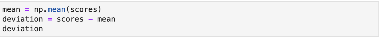 편차는 각 데이터가 평균으로부터 어느 정도 떨어져 있는지를 나타내는 지표이다.