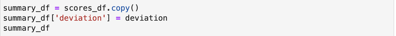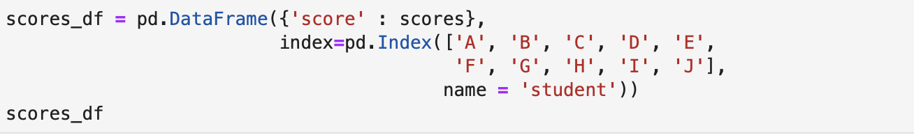 scores_df라는 이름으로 Pandas의 DataFrame을 작성