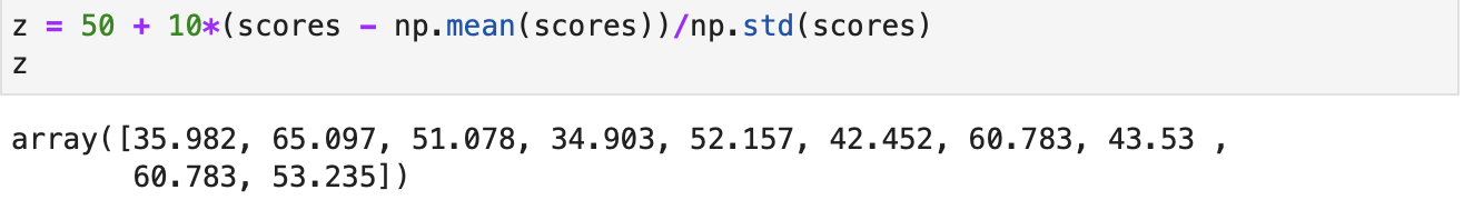 But, 데이터와 동일한 단위를 쓰는 표준편차로 나눗셈을 하였기에, 표준화된 데이터는 점수와 같은 단위를 쓰지 않는다.