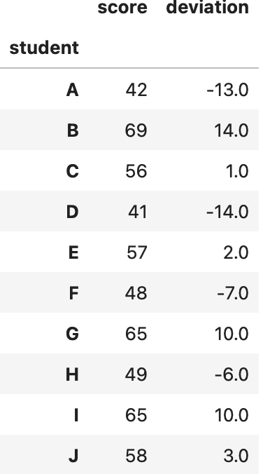 산포도를 구하기 위해서 우선 편차(deviation)을 알아보아야 한다.
