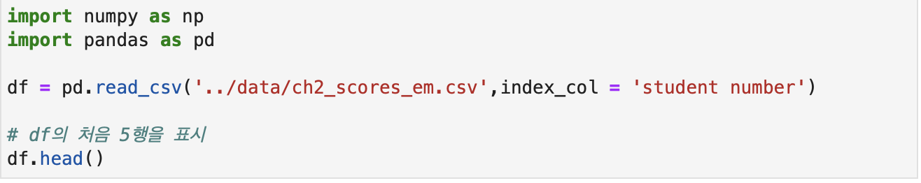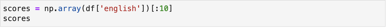이 데이터를 Numpy로 계산하기 위해, Numpy의 array데이터 구조로 된 scores라는 이름으로 저장