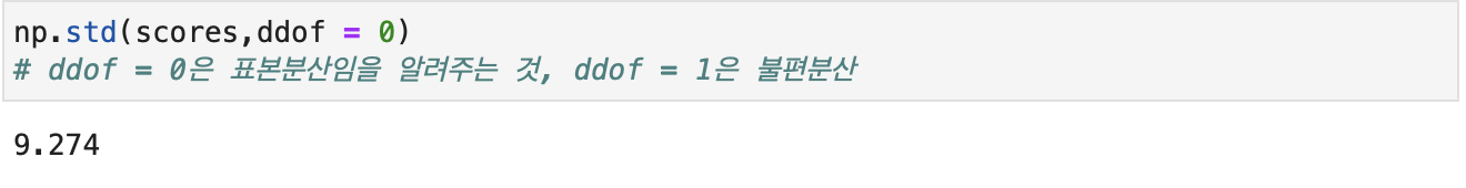 Numpy는 표본 분산, Pandas는 불편분산을 사용하기 때문