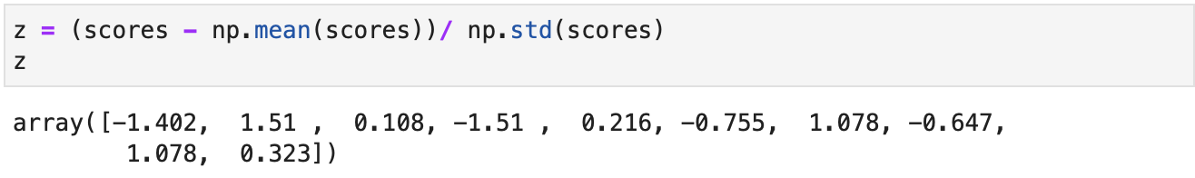 표준화된 데이터를 표준화 변량(standardized data)이나 Z 점수(z-score)라고 한다.