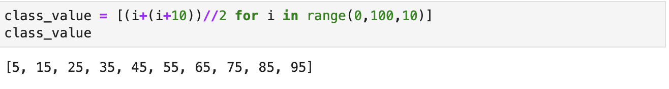 -계급값은 각 계급을 대표하는 값으로, 계급의 중앙값이 이용.