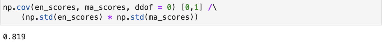 - 영어 점수와 수학 점수의 상관계수