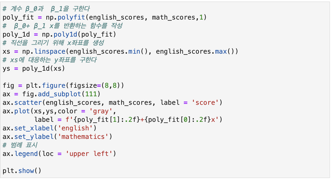 회귀직선(regression line)은 두 데이터 사이의 관계를 더욱 잘 나타내는 직선이다.
