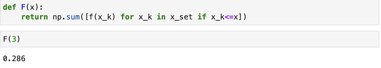 확률함수는 확률변수 X가 x가 될 때의 확률을 반환하는 함수이지만, 확률 변수 X가 x이하가 될 때의 확률을 반환하는 함수로도 자주 사용된다.